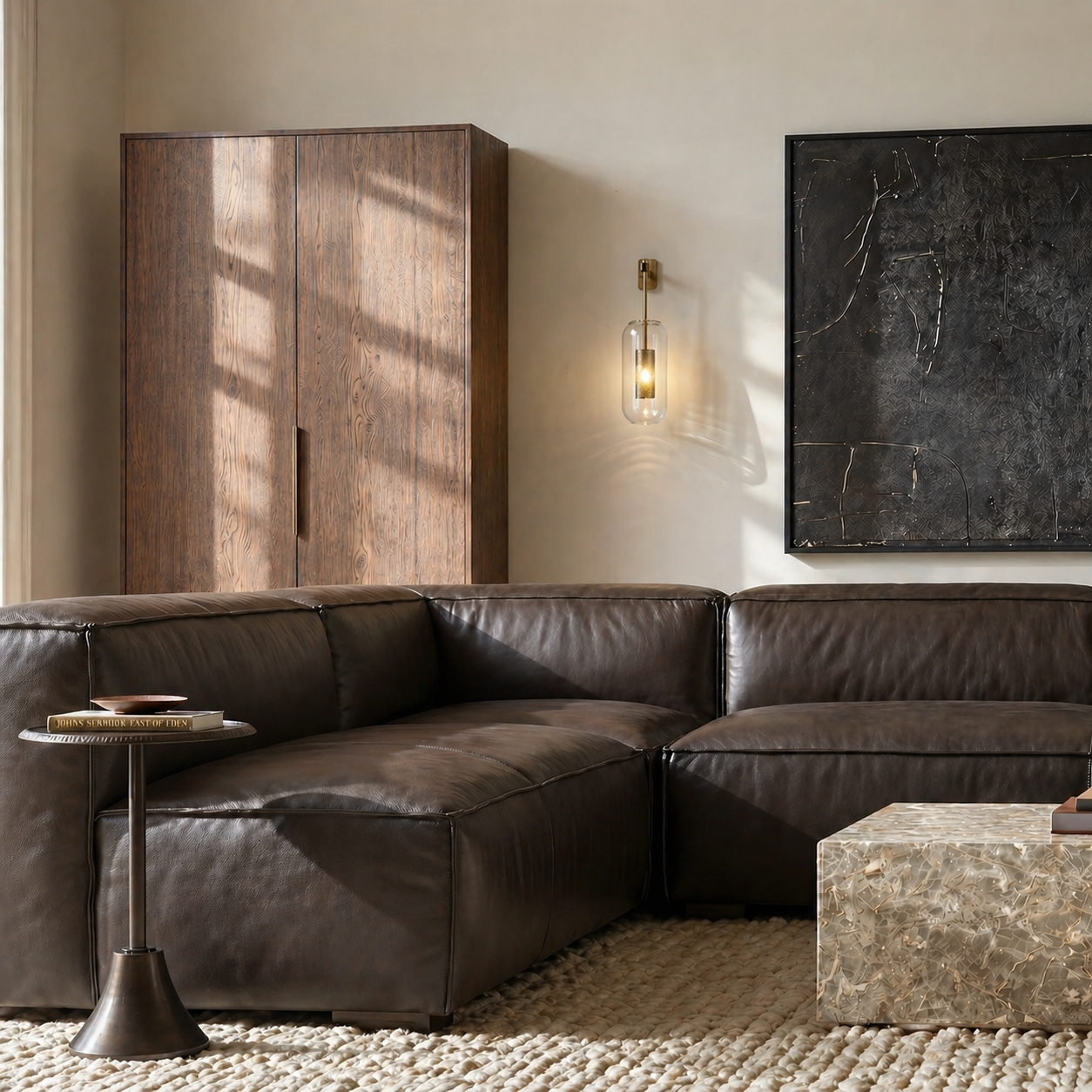 Each piece is made to order - not from a warehouse where it's been sitting for 2 years. We design every sofa for real homes, with precision joinery, solid hardwood framing, and full-aniline leathers that grow richer with time. It's the difference between something bought and something made for you.