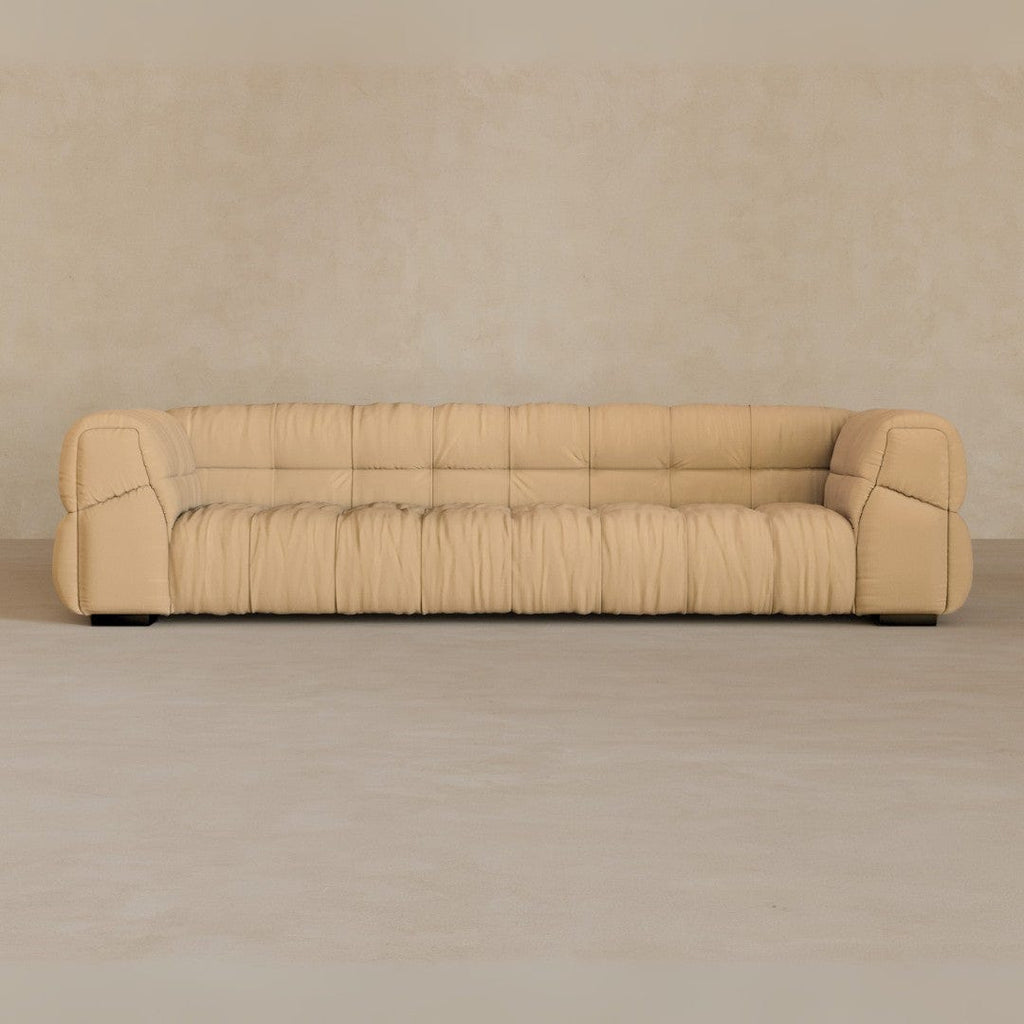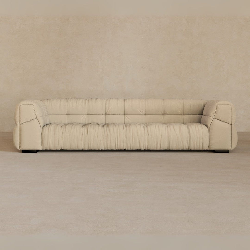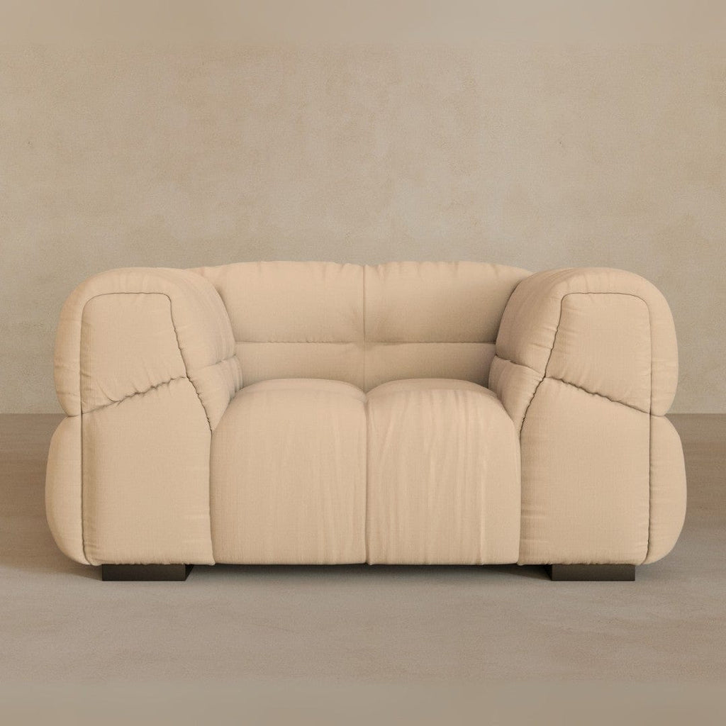 A study in form and proportion, the Puff Sofa brings architectural calm. Generous curves meet precise tailoring — a contrast that feels both grounded and elevated.