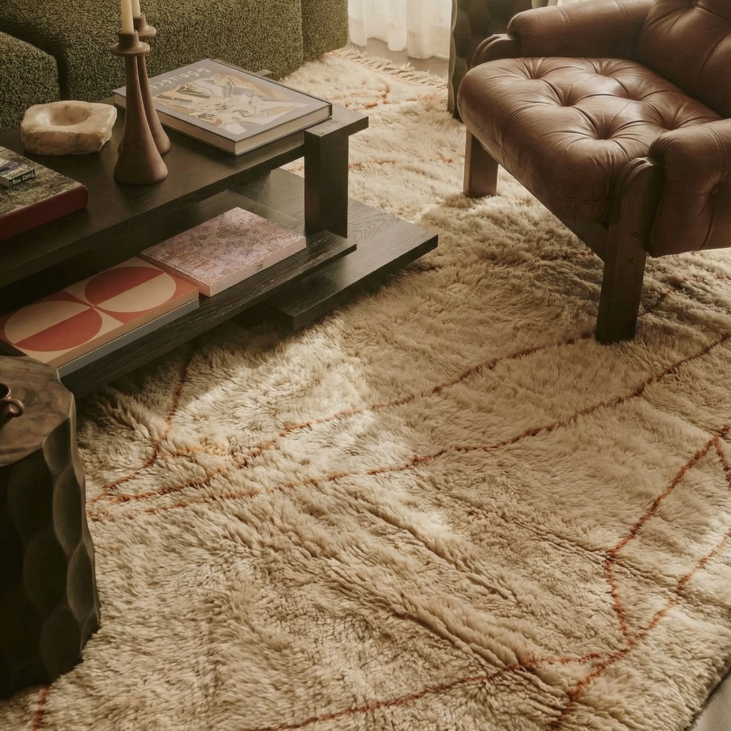 Handwoven by Berber artisans in Morocco’s Atlas Mountains, each rug is crafted from the region’s exceptionally soft wool. Blending modern sensibility with traditional Moroccan design, no two pieces are ever alike—each is made to order, carrying centuries of weaving heritage into your home.