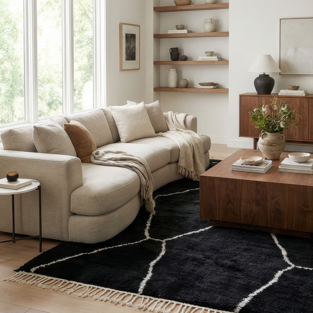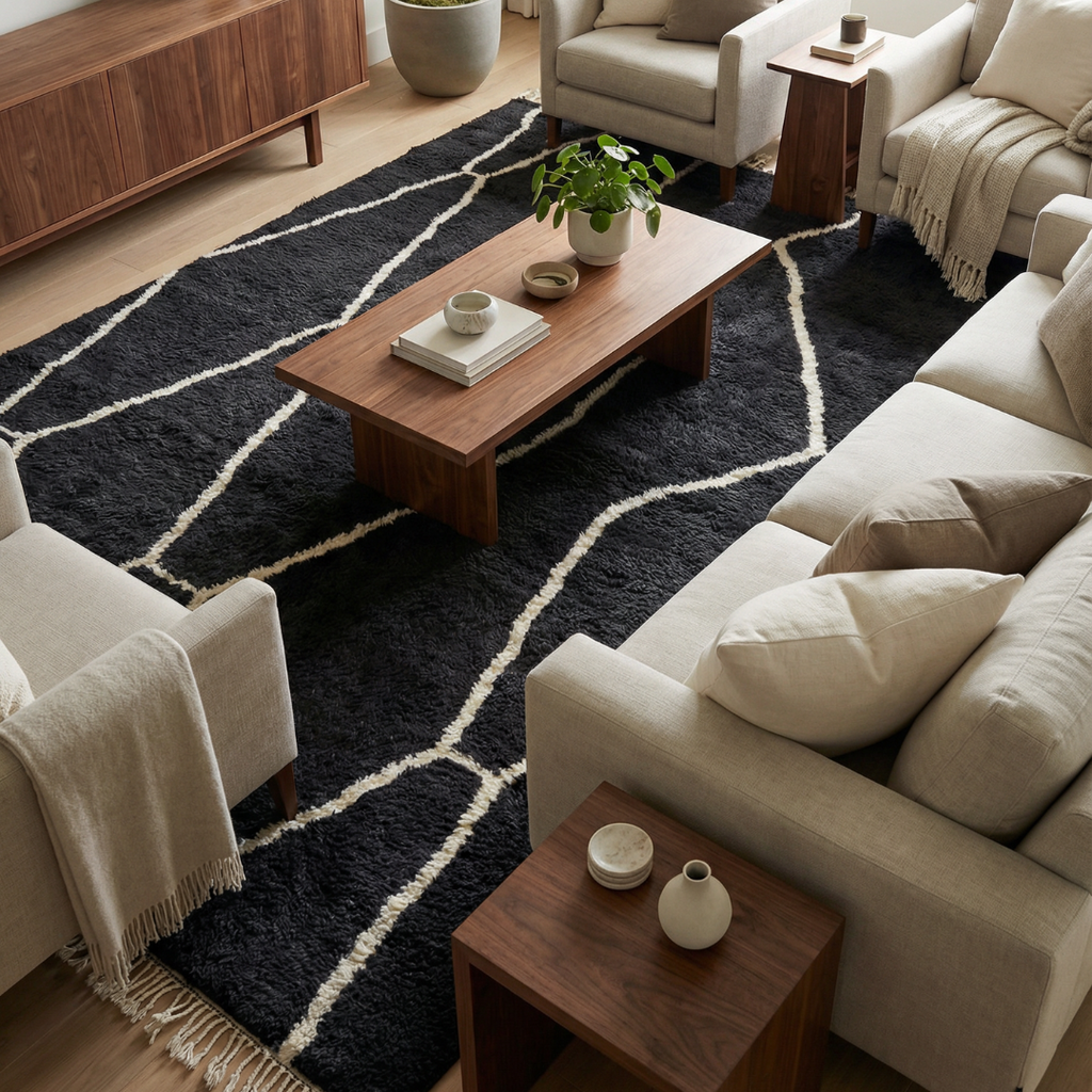 The Look: A timeless balance of modern design and traditional Moroccan artistry - each rug is a one-of-a-kind statement.