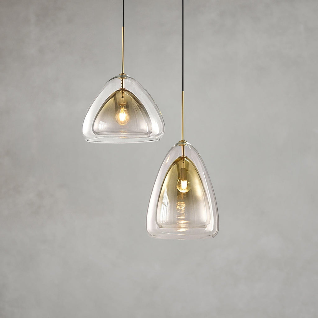 Introducing the Royal Glow Pendant Light, a stunning lighting fixture that exudes elegance and sophistication. This pendant lamp is expertly crafted from high-quality glass and iron, and features a unique shape that is sure to capture the attention of anyone who sees it.