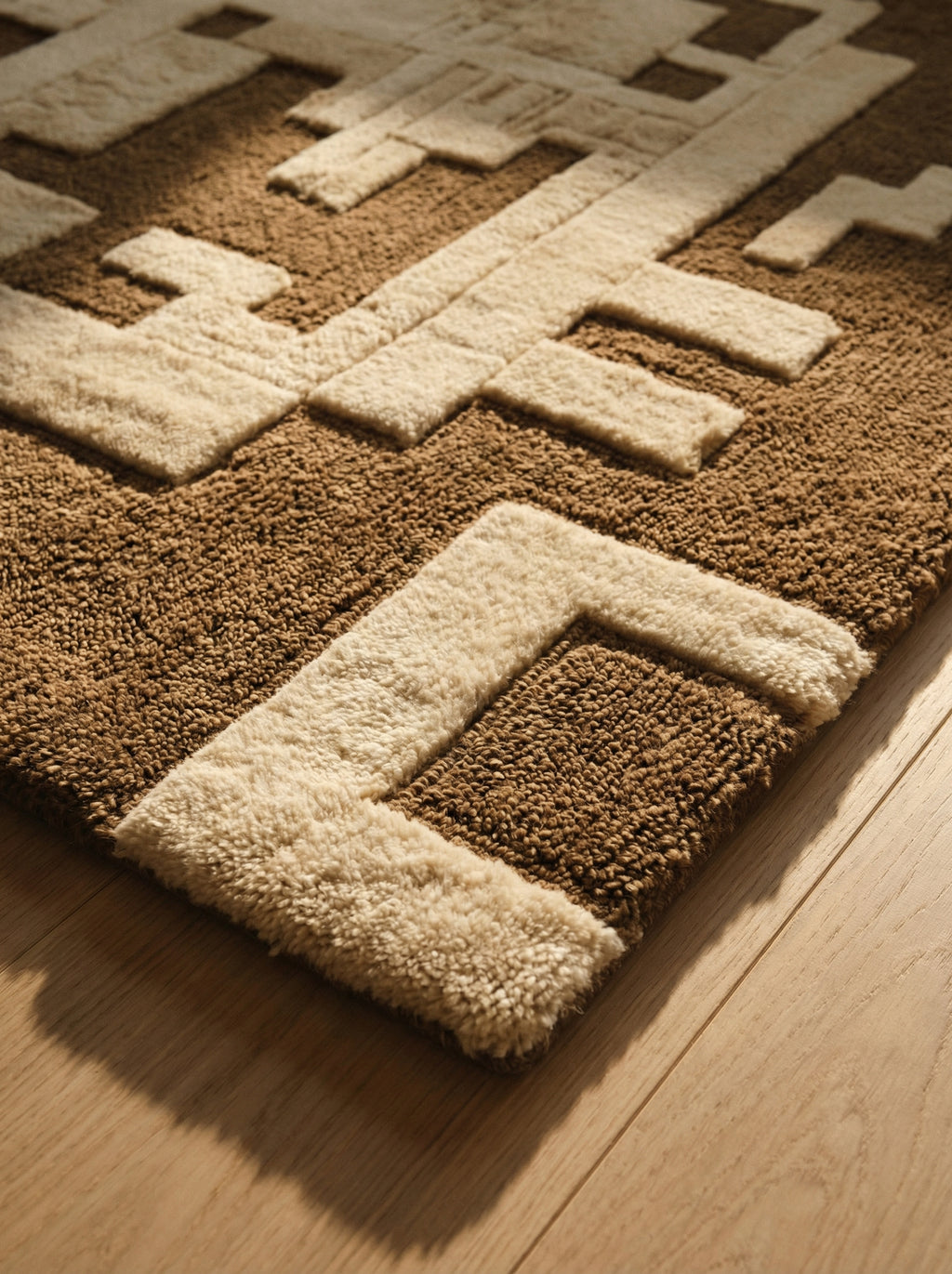 The dimensional high–low surfaces are carefully built to create depth while maintaining structural integrity. Every rug is finished to ensure long-term performance and visual clarity.