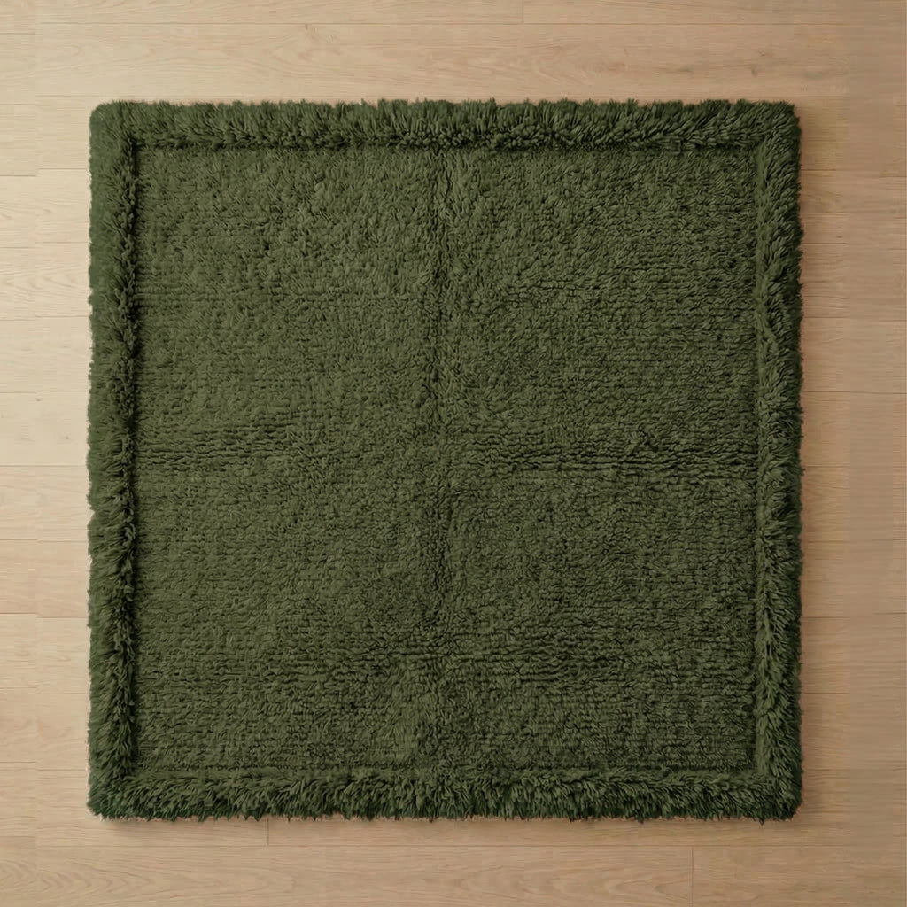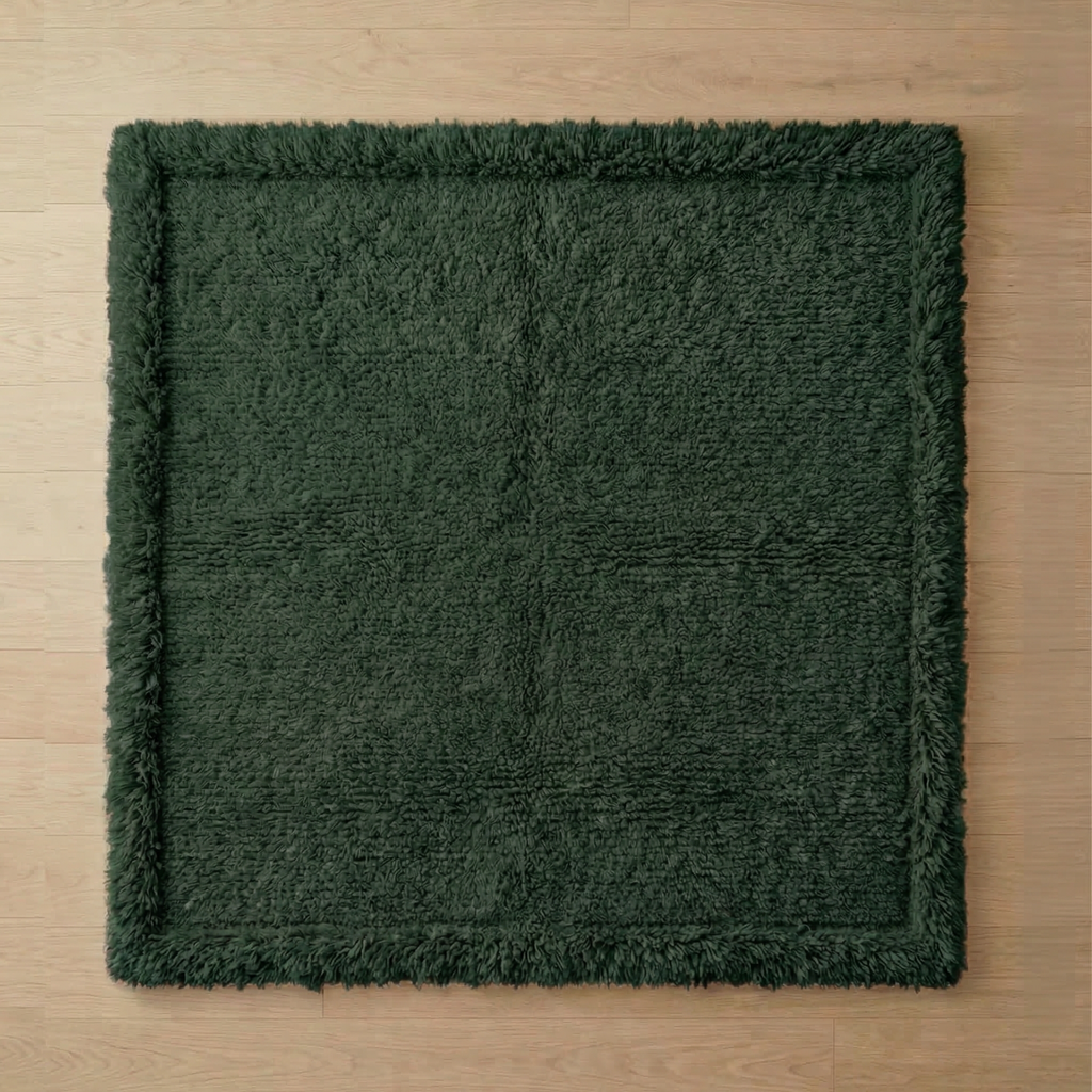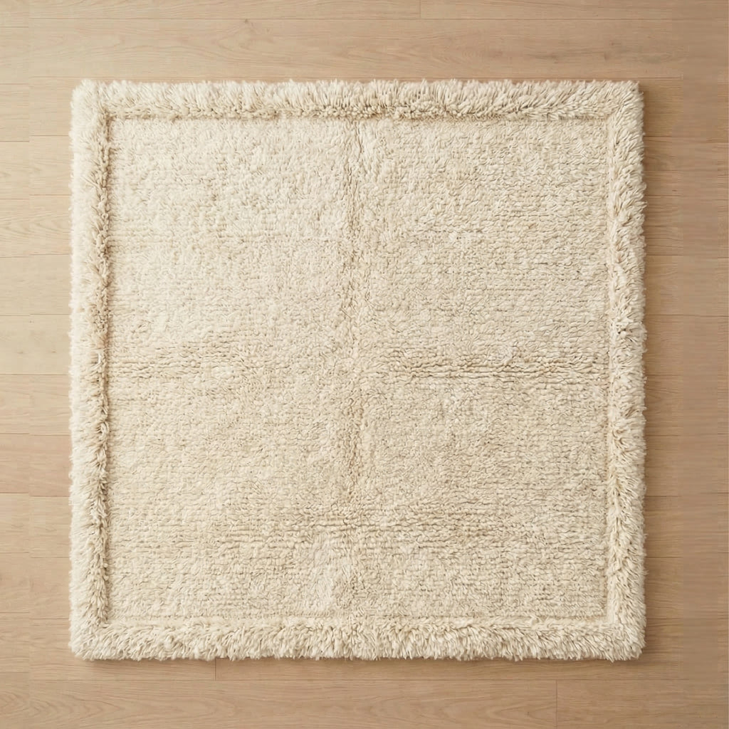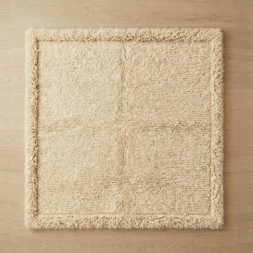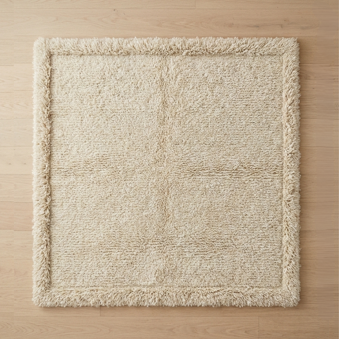 Its finely woven texture and subtle border framing provide structure without demanding attention. From afar, it reads minimal. Up close, it reveals quiet detail.