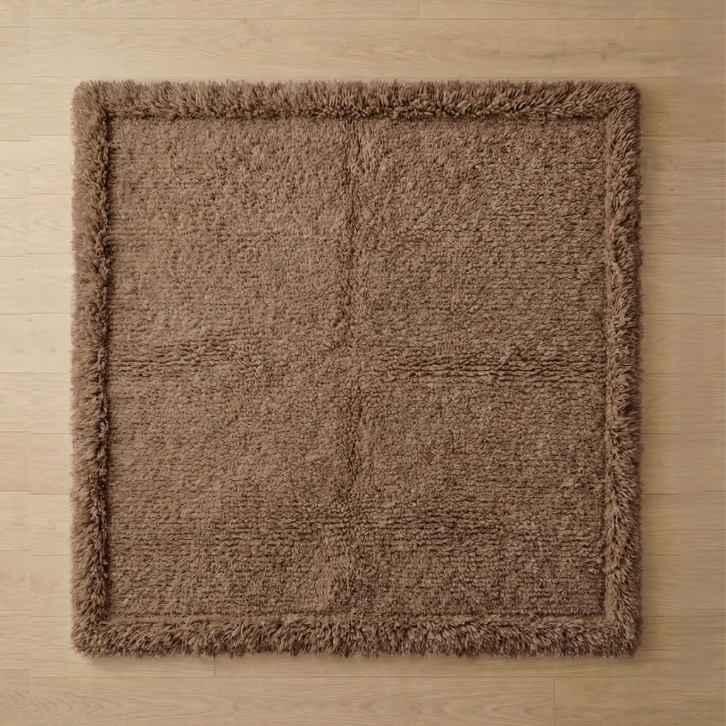 Each block is defined by texture rather than color, allowing the rug to feel modern and architectural while remaining tonally cohesive.
