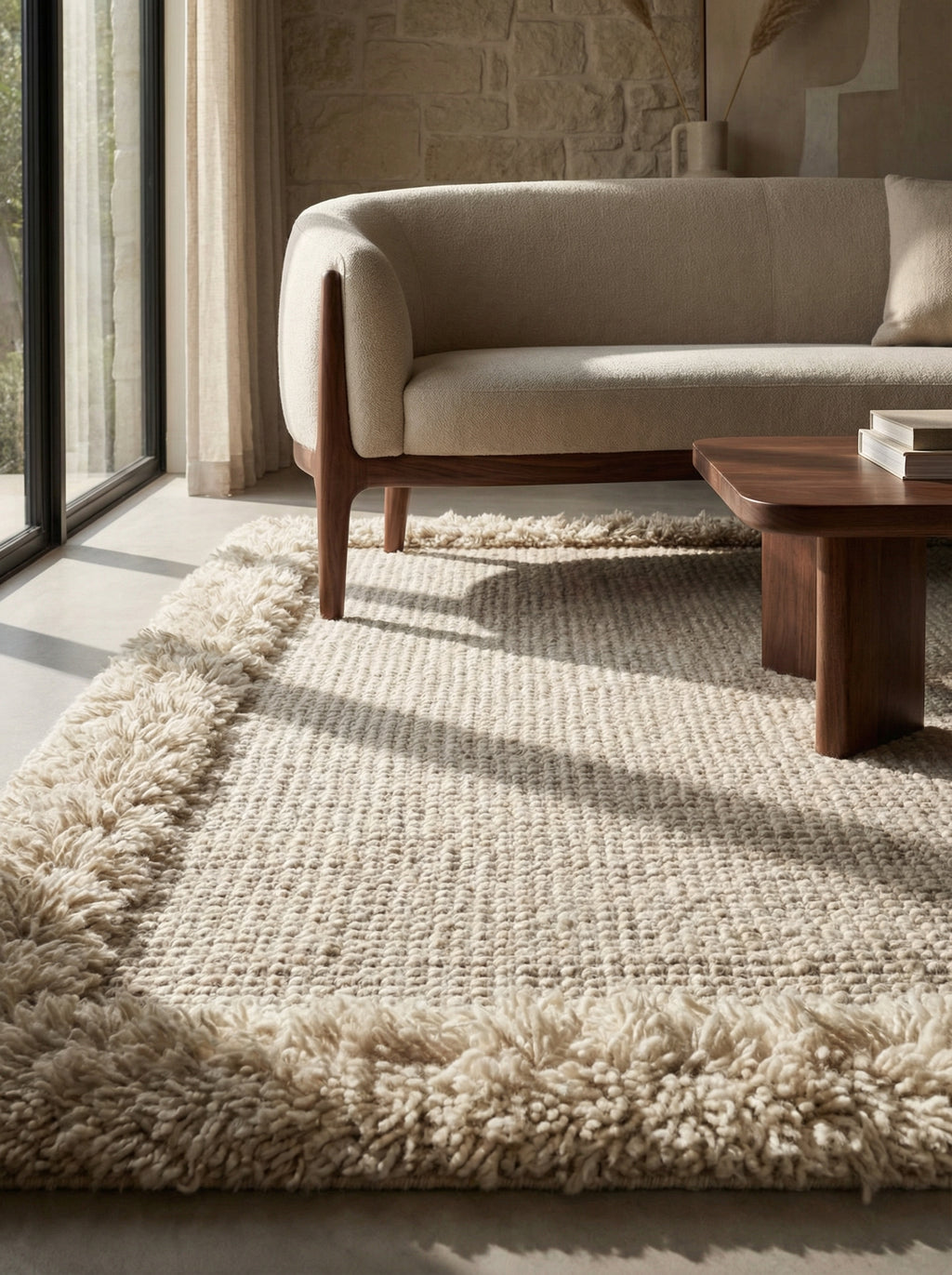 The variation in pile height allows light to move across the surface, revealing dimension as the day shifts. The result is visual interest that feels built — not applied.