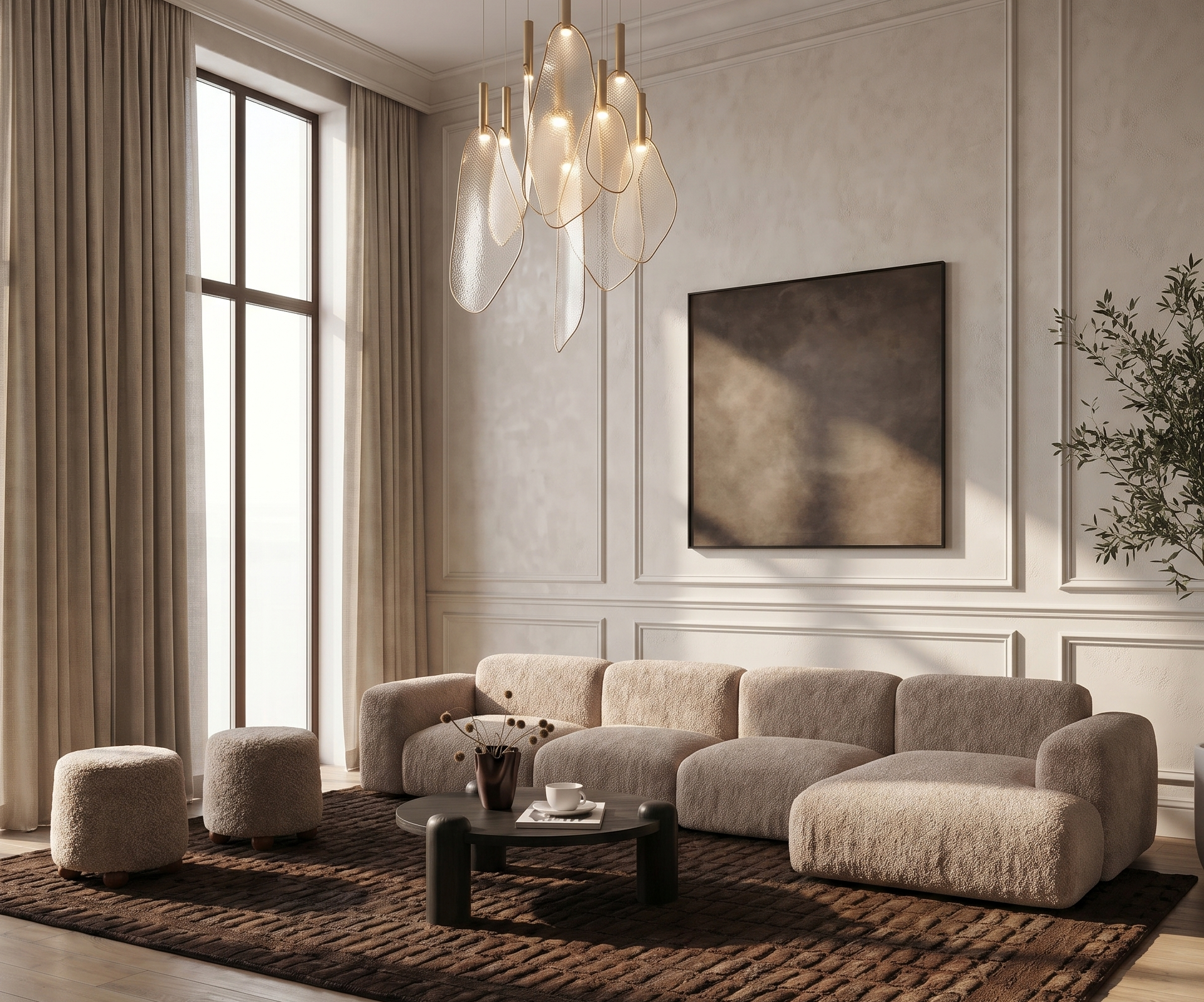 A study in form and proportion, this sofa brings architectural calm. Generous curves meet precise tailoring — a contrast that feels both grounded and elevated.