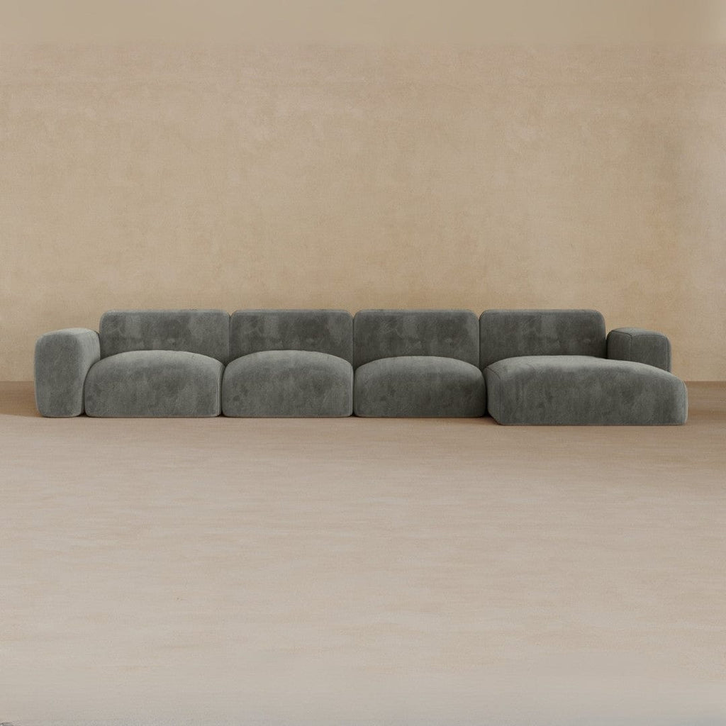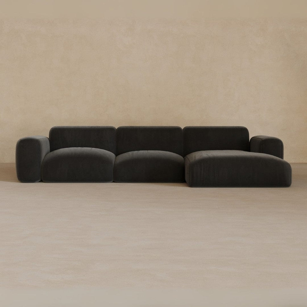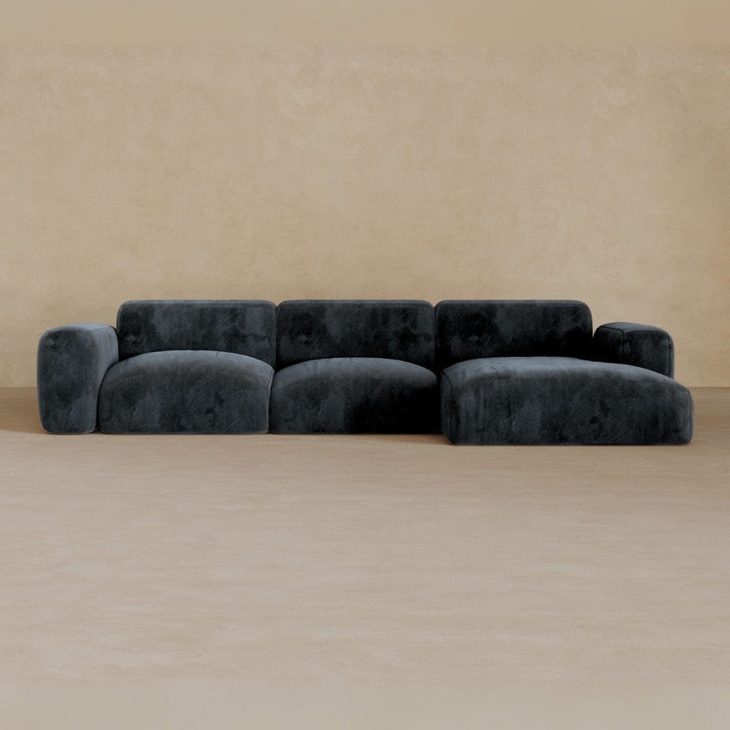 If you were standing in front of the sofa, a left handed sectional would have the long chaise on the left and a right handed sectional would have the long chaise on the right.