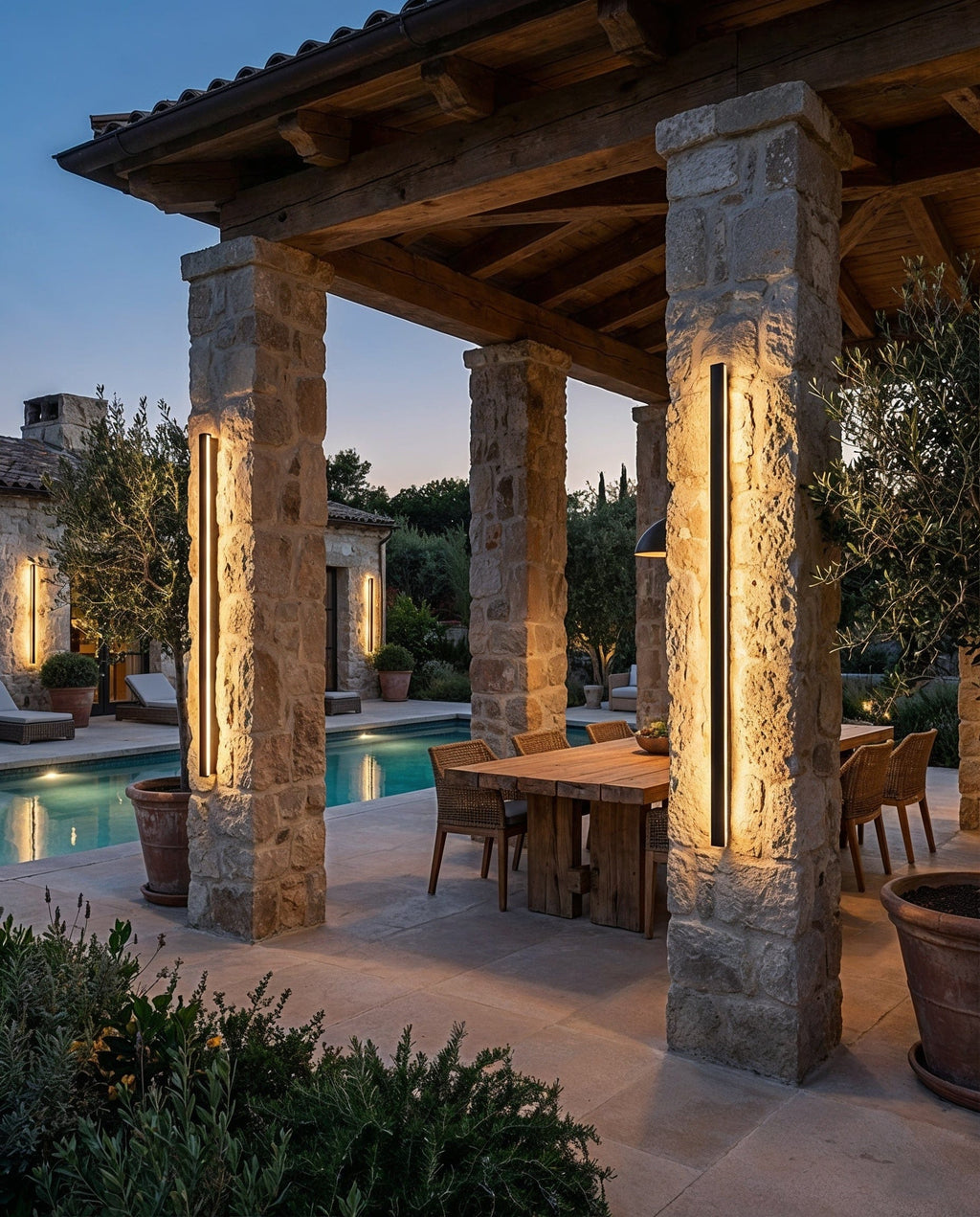 These lights are used on entrances, outdoor posts, along pathways, and are completely water/bug proof and use materials that protects against rust.